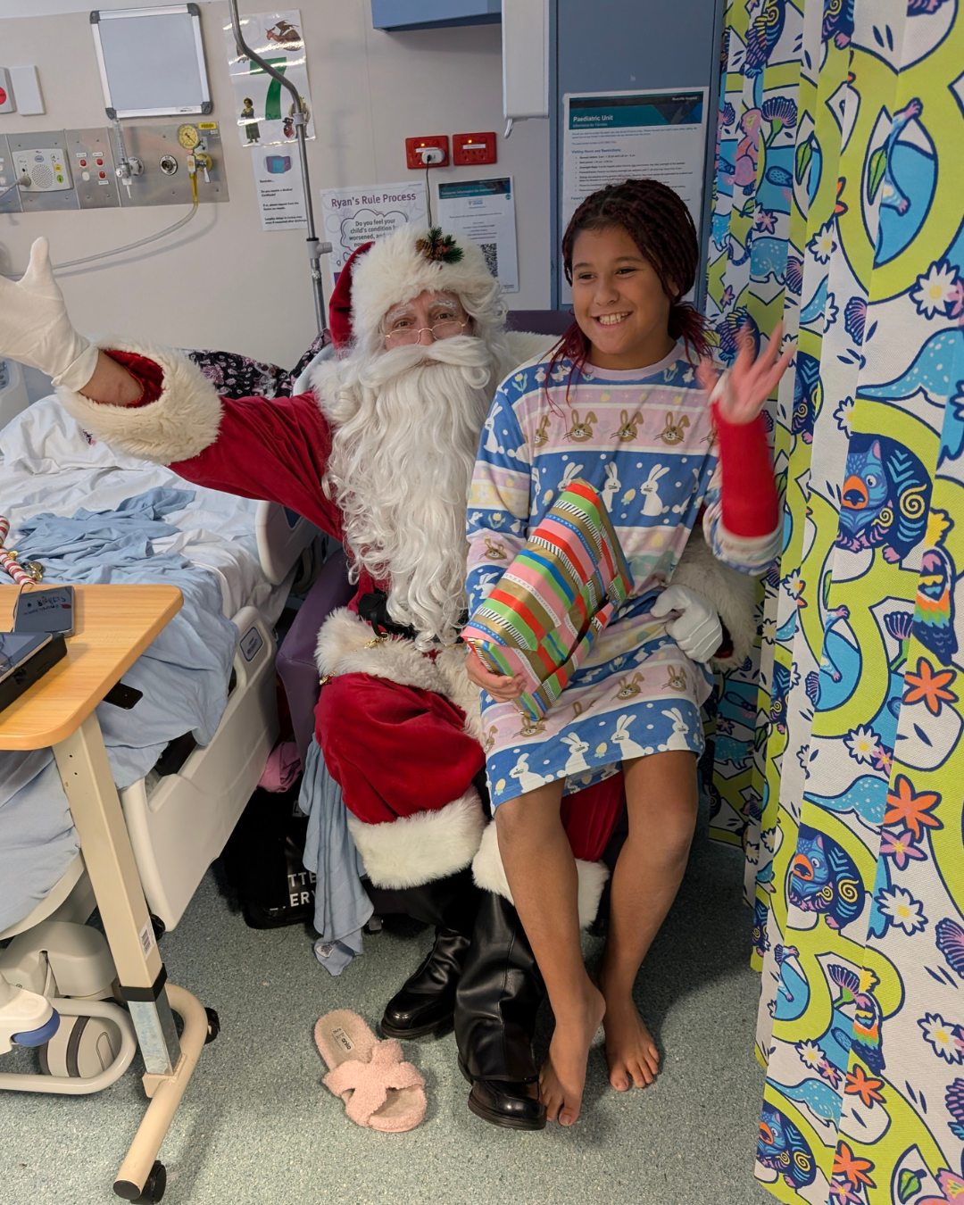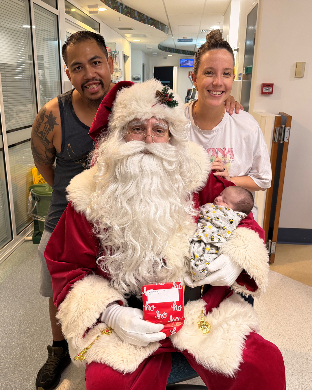 “After 25 nights in hospital... upon discharge today our beautiful Beau got to meet Santa for the first time. Thankyou Santa for making the kids smile today. Raise it for Redcliffe Hospital made our day - and Beau’s!”
